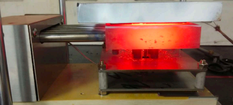 Heat the sample on a heating platform as shown below. Maintain the hot surface at 600 ± 25 °C for 10 minutes. Apply a stress of 0.8±0.05 MPa at the test temperature, ensuring the back surface temperature remains below 200°C.